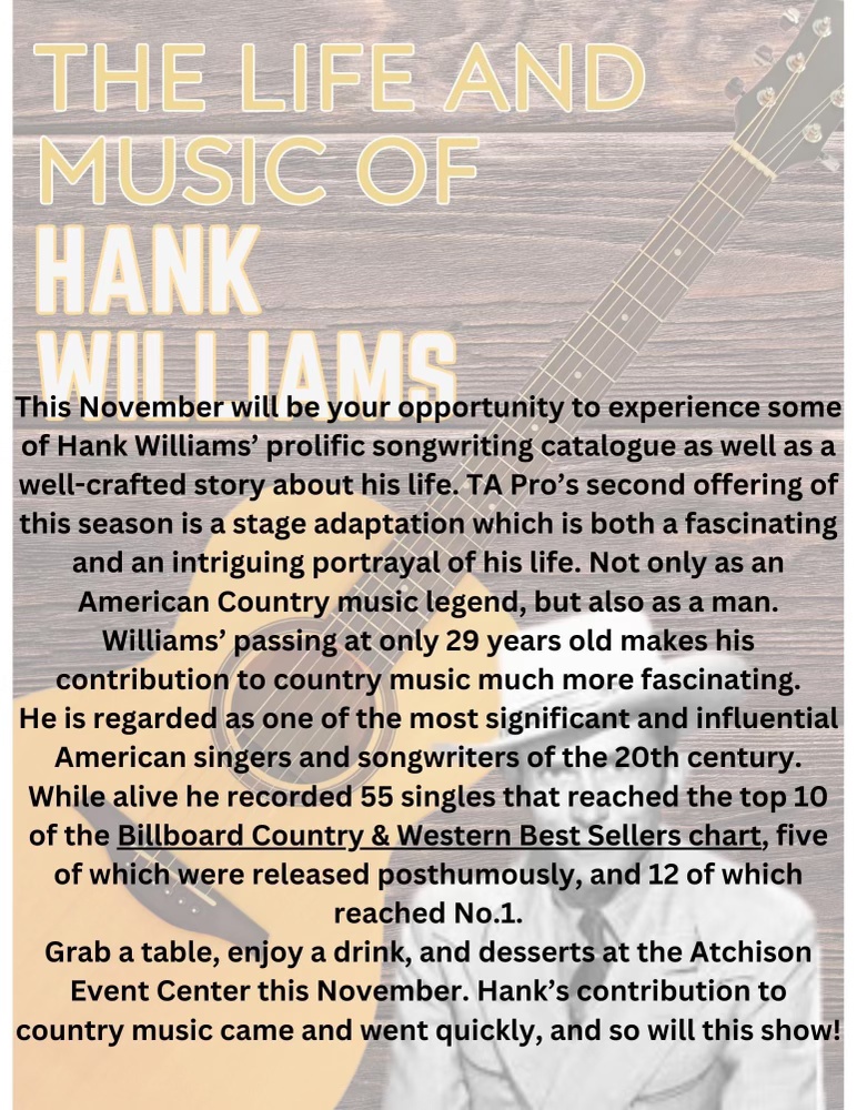 “The Life of Hank Williams” A Musical- Historical- Play Experience created by Theatre Atchison