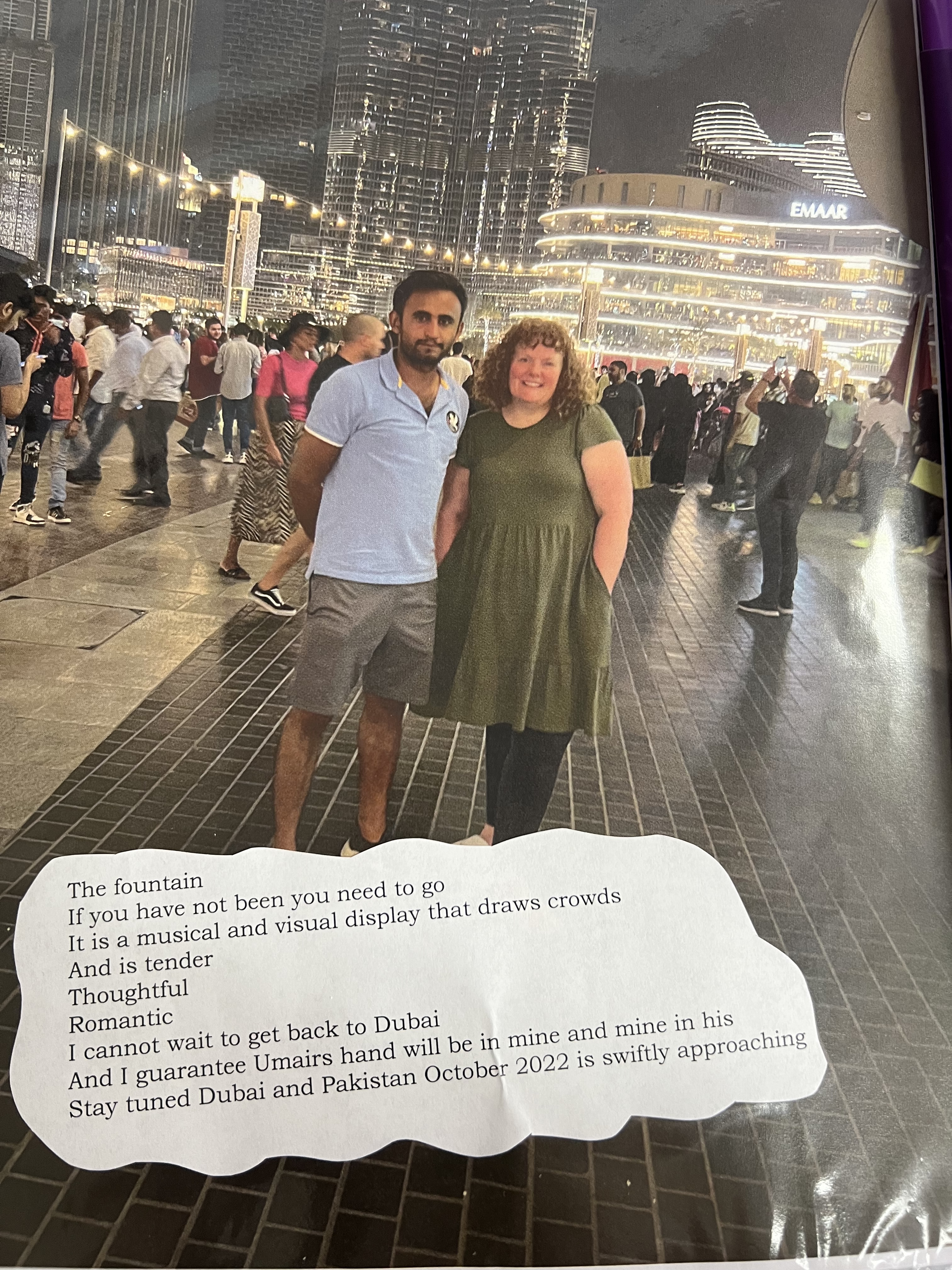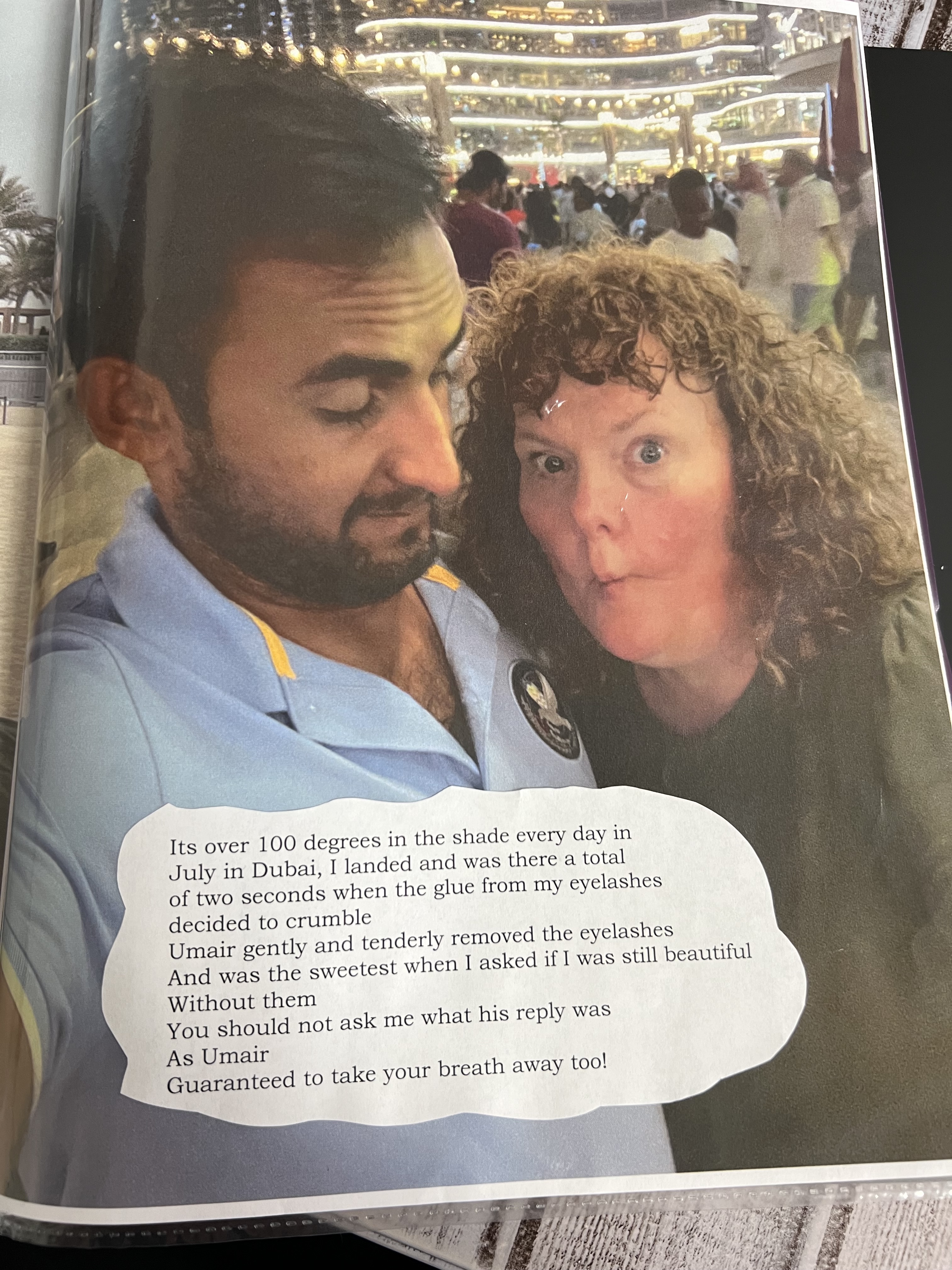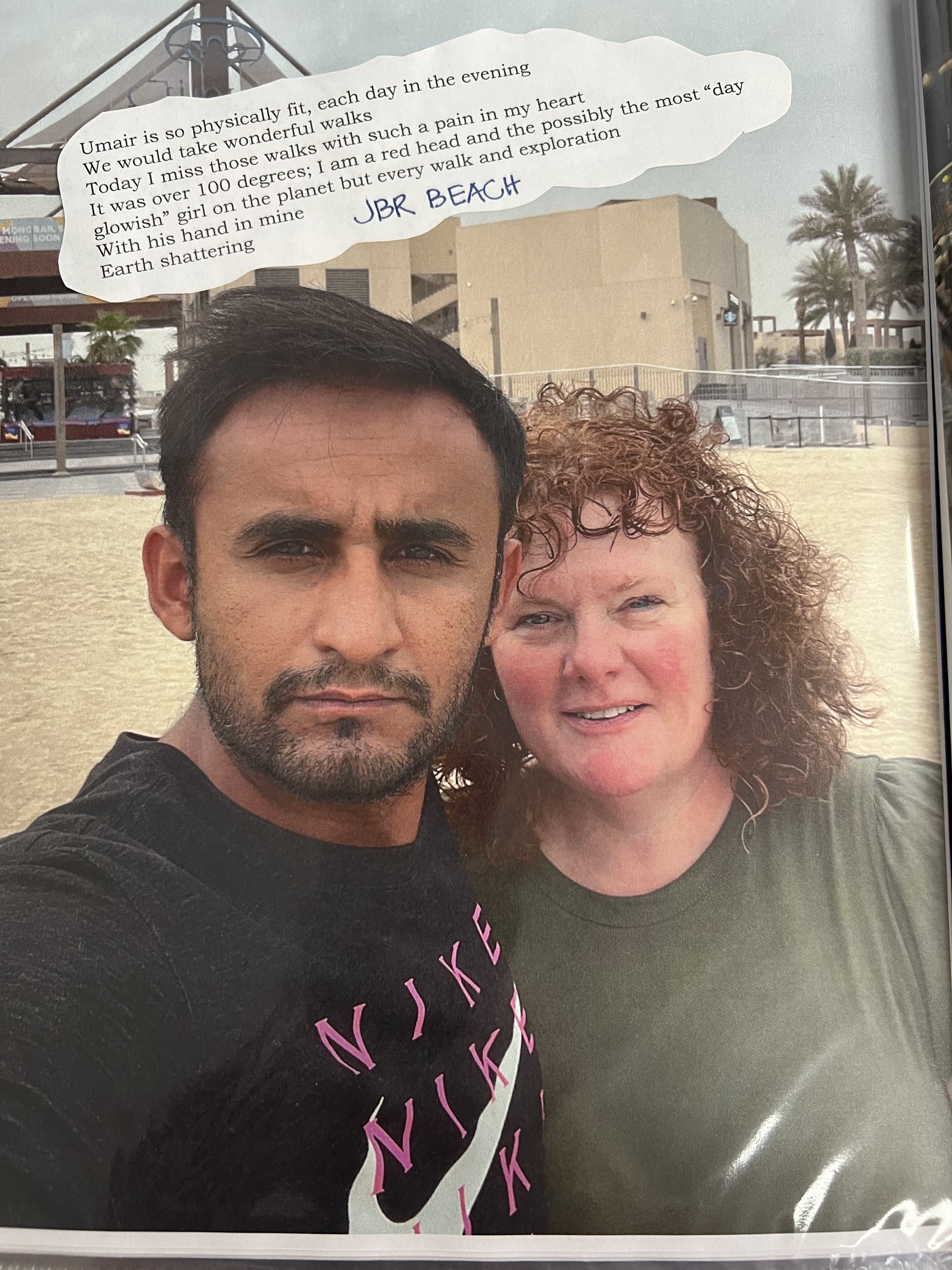 So when anyone asks about our love story these are the words I have to impart. The beginning of every breath that ever mattered began when Umair started loving me. The moments when he has picked me up and sheltered my heart are simply to many to count. Our honeymoon in Dubai, I came even more to life. I have never known paradise. From simple declarations of afternoon tea or Tim Horton coffee. Umair and I going all around searching for a half and half pizza and we were happy. I didn’t have a clue what all the jazz was about the fountain and then Umair took me there. Lady Gaga “I will never love again” played and it cannot be more truer, Umair a lifetime will never be long enough loving you. The half day tour, I loved our guide his words only added to our paradise. You took my breath away putting your arms around me in the taxi and on the tour bus. Culminating by happiness when you took me to the mosque for the very first time. There was one across from our hotel as well. Our trip to see the Atlantis hotel. The green planet and touching a snake while holding you. The gold souk and the boat taxi. When I look at our journey there is only love more and more love for you that takes my breath away. For a girl who had never seen the world, Umair offered me paradise for our honeymoon. In Dubai, we kissed and held each other constantly, and I only wanted to hold Umair even more, he takes my breath away. Up and down the elevator I wanted him on my skin touching me. I am undone, and utterly and completely in love with my husband. The day I boarded the plane the entire day I felt more and more sadness, I held it in until I was past the first security check point and then cried practically the entire 48 plus hour flight. I cried seeing the couple holding each other on the departure benches in Germany. It should have been Umair and I. I cried because if Umair could have traveled with me we would have taken the layover. The only happy moments the return flight were Umair and I on the phone. The next three days after I got home I didn’t know how I would ever breath again. Since returning to US I have goals I have to achieve the ones that bring Umair and I together forever and legally. I have heard bullshit about the country he is from etc., and truly look at any one of these photos and find a spot where you don’t see two people completely in love. So after the immigration lawyers said more time to prove you two are legit. The only thing I know is I love Umair and I would, will and continue to walk through fire to bring us together in the same country forever.